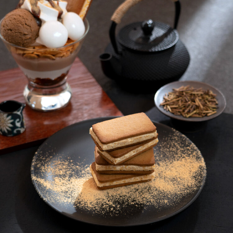 まるで「ほうじ茶パフェ」を味わっているような、心ときめくサンドクッキーです。